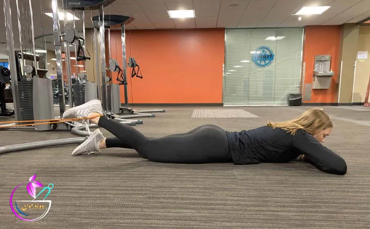 عضلههای درگیر در این تمرین: عضله سرینی بزرگ، همسترینگ و عضله راستکننده ستون فقرات.