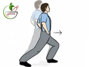چگونگی انجام حرکت:یک قدم به جلو بردارید، به گونه ای که پاهای تان حدود یک متر از هم فاصله داشته باشد؛ زانوها را کمی خم کنید و لگن خود را به جلو فشار دهید، تا وقتی احساس کشش کنید. ۳۰ ثانیه مکث کنید. سپس با پای دیگر این حرکت را انجام دهید.