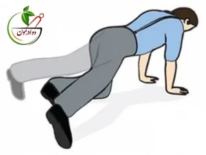 چگونگی انجام حرکت:برروی یک تشک زانو بزنید؛ زانوها باید در زاویه ۹۰ درجه قرار گیرند؛ سر، پشت، و ران ها نیز موازی باهم باشند. به عقب خم شوید، مانند اینکه می خواهید به جایی تکیه دهید؛ ۲ تا ۳ ثانیه مکث کنید؛ سپس دوباره حرکت را تکرار کنید.