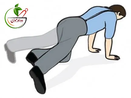 چگونگی انجام حرکت:در حالت ۴ دست و پا قرار گیرید، سپس پای راست خود را به سمت عقب بکشید تا صاف و کمی متمایل به راست باشد، انگشتان پا باید روی زمین قرار گیرد. حالا پای راست خود را بلند کنید و روی پای چپ خود ببرید؛ سپس پاها را عوض کرده و این تمرین را تکرار کنید.