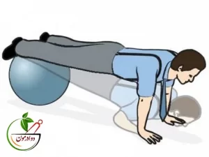 چگونگی انجام حرکت:ساق پاهای تان را روی توپ سوئیسی قرار دهید و حرکت شنا را انجام دهید؛ این حرکت را در ۳ ست و در هر ست ۱۵ تا ۲۰ بار تمرین کنید.