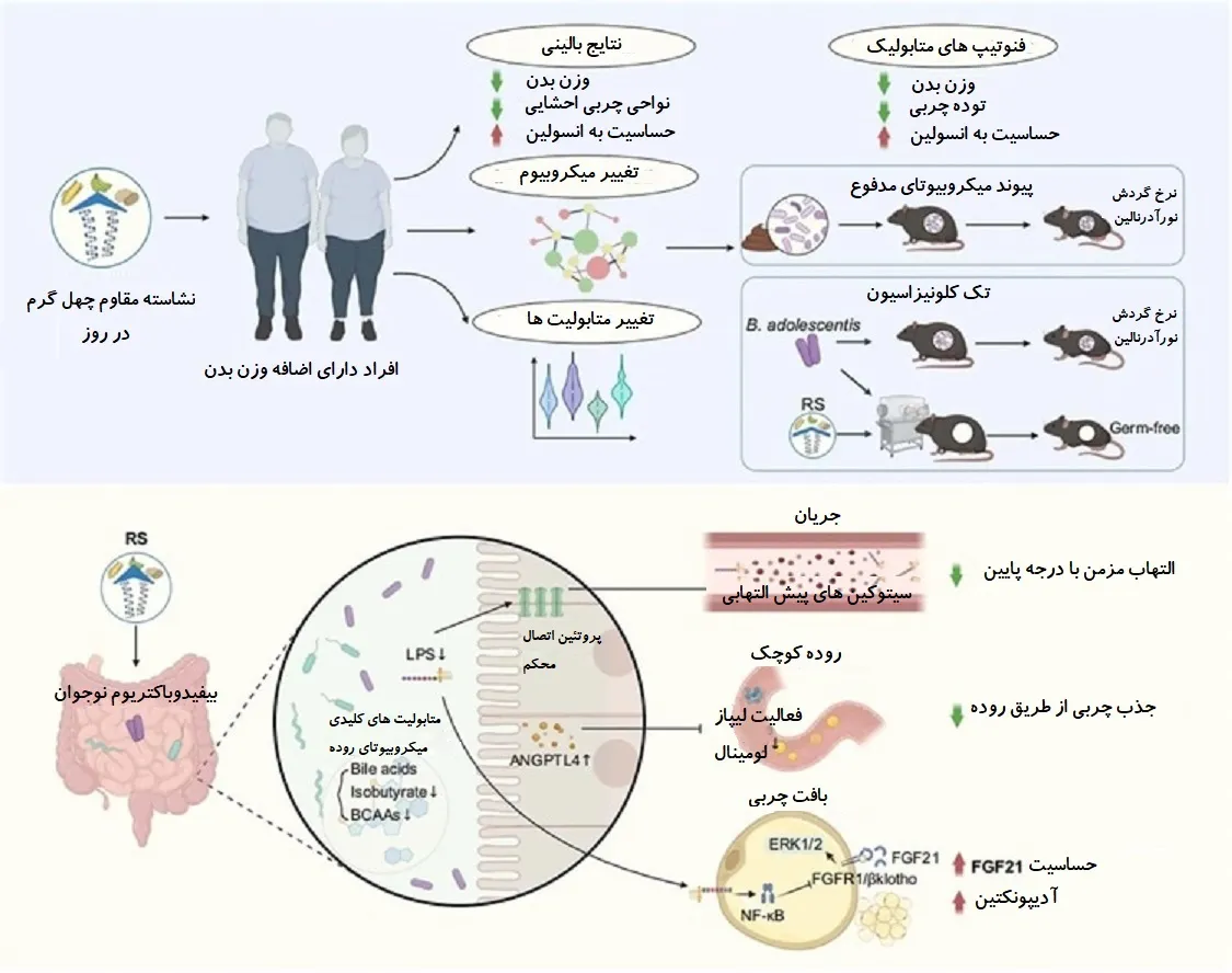 به طور خلاصه، این مطالعه نشان داد که مکمل با نشاسته مقاوم می تواند کاهش وزن را با افزایش فراوانی B. adolescentis در میکروبیوم روده تسهیل کند. همچنین می تواند از طریق تغییرات ناشی از میکروبیوم روده در سطوح اسیدهای صفراوی ثانویه و کاهش التهاب به بهبود حساسیت به انسولین کمک کند.