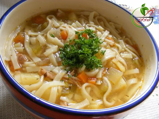سوپ نودل و مرغ: یک کاسه سوپ نودل و مرغ داغ حاوی حدود ۱۵۰ کالری می باشد.
