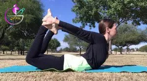 - زانوها را به بیرون خم کرده و با دست قسمت بیرونی مچ پا را بکشید. اگر گرفتن مچ برایتان دشوار است، فقط دستان خود را به سمت آن بکشید.